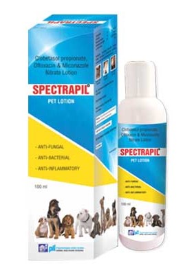 Spectrapil Lotion is useful in contact dermatitis,eczematous dermatitis & seborrheic dermatitis, Pyoderma Cryptococcosis, Candidiasis, Mixed dermal infections exhibiting inflammation and pruritus, Steroid responsive dermatoses, Idiopathic wounds and abscess. Its four active ingredients provide therapeutic effects like anipruritic, antifungal, anti-inflammatory & anti-bacterial. Provides prolonged symtomatic relief on topical administration.