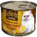 Bellotta Gatto Tuna in Jelly Topping Chicken (3 Layers) Canned Cat Food 185 gm has Tuna as the main ingredient providing all the necessary nutrients for sustaining a healthy and active lifestyle in cats of all breeds. Soybean oil offers a substantial amount of protein for increasing strength and endurance. Essential vitamins and minerals in the diet keep the bones and joints of the feline in strong condition. Lutein is another constituent of the food helping to keep good eye vision. Bellotta Gatto Tuna in Jelly Topping Chicken (3 Layers) Canned Cat Food has a high moisture content up to 87% for keeping your pet cat well hydrated. Organic fibres in the diet regulate the feline’s bowel movement and assist a higher absorption of food. A moderate fat content completes the high energy requirements in pregnant and nursing cats. Â