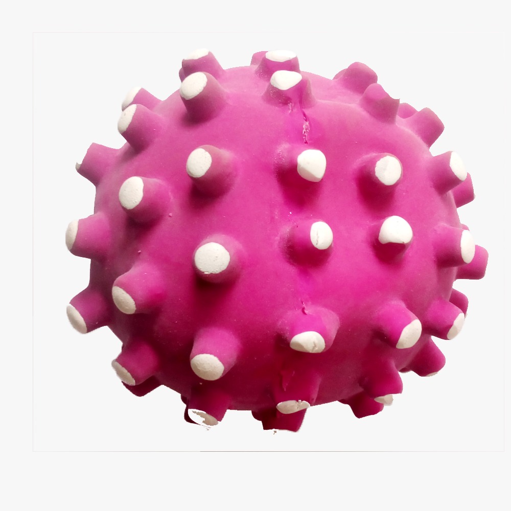 This funny brightly colored dog toy in the shape of Pink Ball with spike .Latex is the natural choice for puppies and dogs. Designed to massage the gums, satisfy the urge to chew or offer a fetching good time.