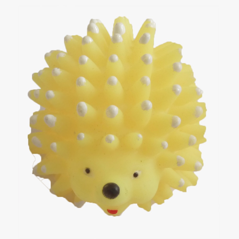 This funny brightly colored squeaky dog toy in the shape of a Yellow porcupine is made from safe nontoxic vinyl that is soft and easy for dogs to carry around in their mouth, it provides great fun and exercise for hours of enjoyment.