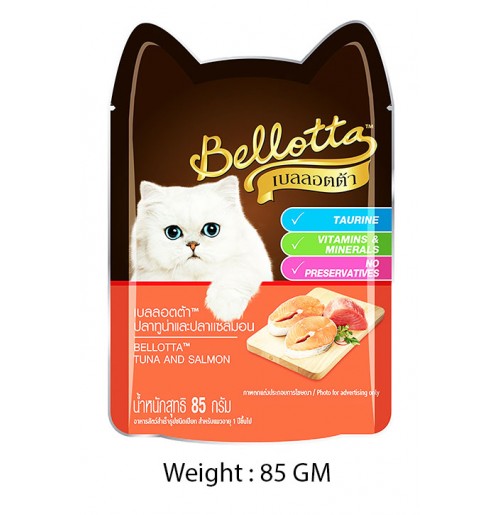 Bellotta tuna and salmon is made from quality materials through cooking meticulously planned from the chicken, tuna salmon, sardines, to taste the cat. It is rich in nutrients supplement chicken & wheat chicken. The meal was delicious ready for your favorite cat. It is a source of omega-6 fatty acids nourish the skin & coat.